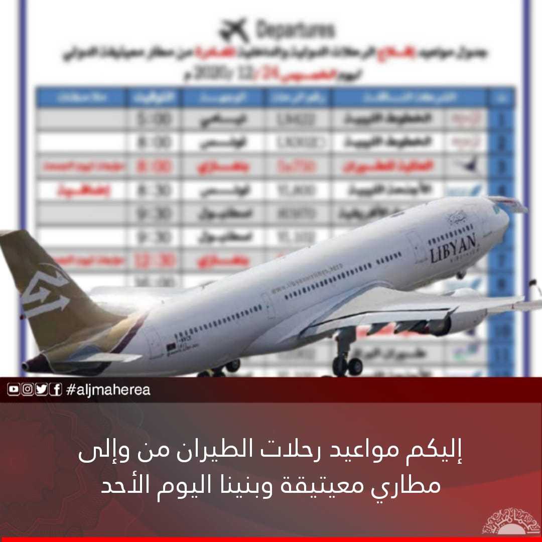 إليكم مواعيد رحلات الطيران من وإلى مطاري معيتيقة وبنينا اليوم الأحد
