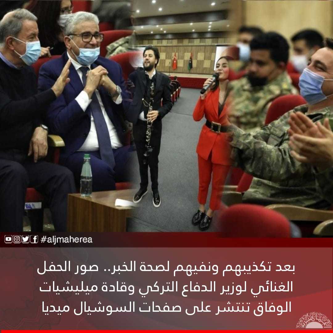 بعد تكذيبهم ونفيهم لصحة الخبر.. صور الحفل الغنائي لوزير الدفاع التركي وقادة ميليشيات الوفاق تنتشر على صفحات السوشيال ميديا