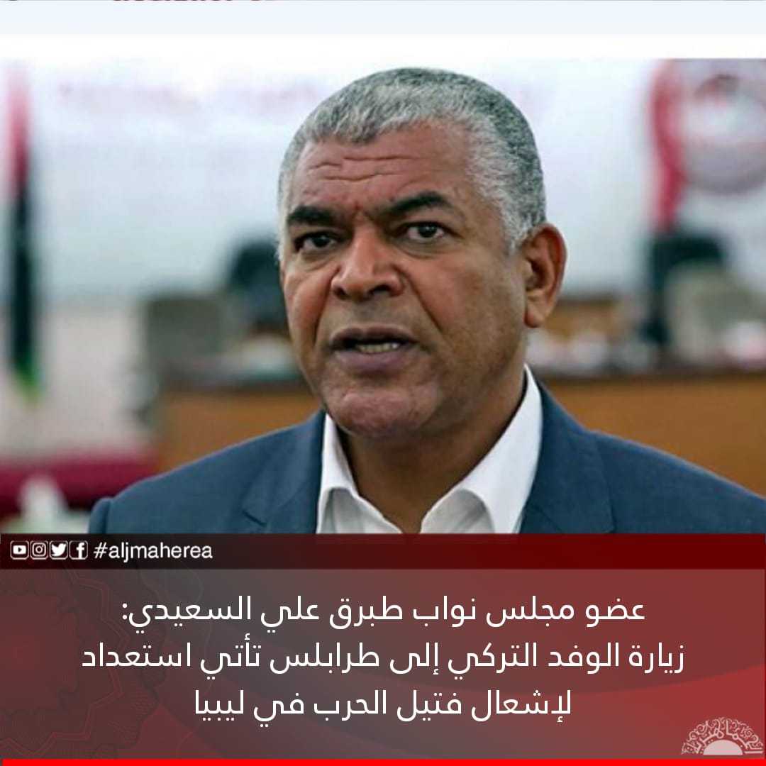 عضو مجلس نواب طبرق علي السعيدي: زيارة الوفد التركي إلى طرابلس تأتي استعداد لإشعال فتيل الحرب في ليبيا