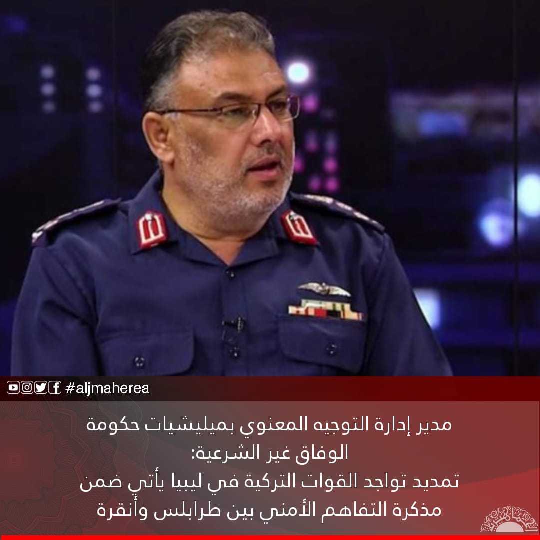 مدير إدارة التوجيه المعنوي بميليشيات حكومة الوفاق غير الشرعية: تمديد تواجد القوات التركية في ليبيا يأتي ضمن مذكرة التفاهم الأمني بين طرابلس وأنقرة