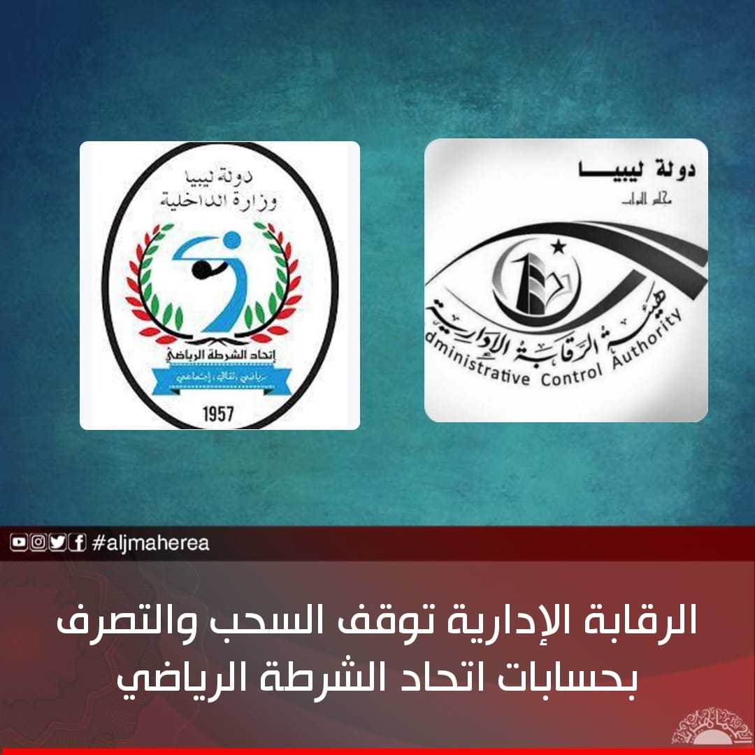 قررت هيئة الرقابة الإدارية التابعة لمجلس نواب طبرق، إيقاف السحب أو التصرف في الأموال المودعة بحسابات اتحاد الشرطة الرياضي في مصرف التجارة والتنمية؛ نتيجة وجود مخالفات إدارية ومالية أضرت بالمال العام.