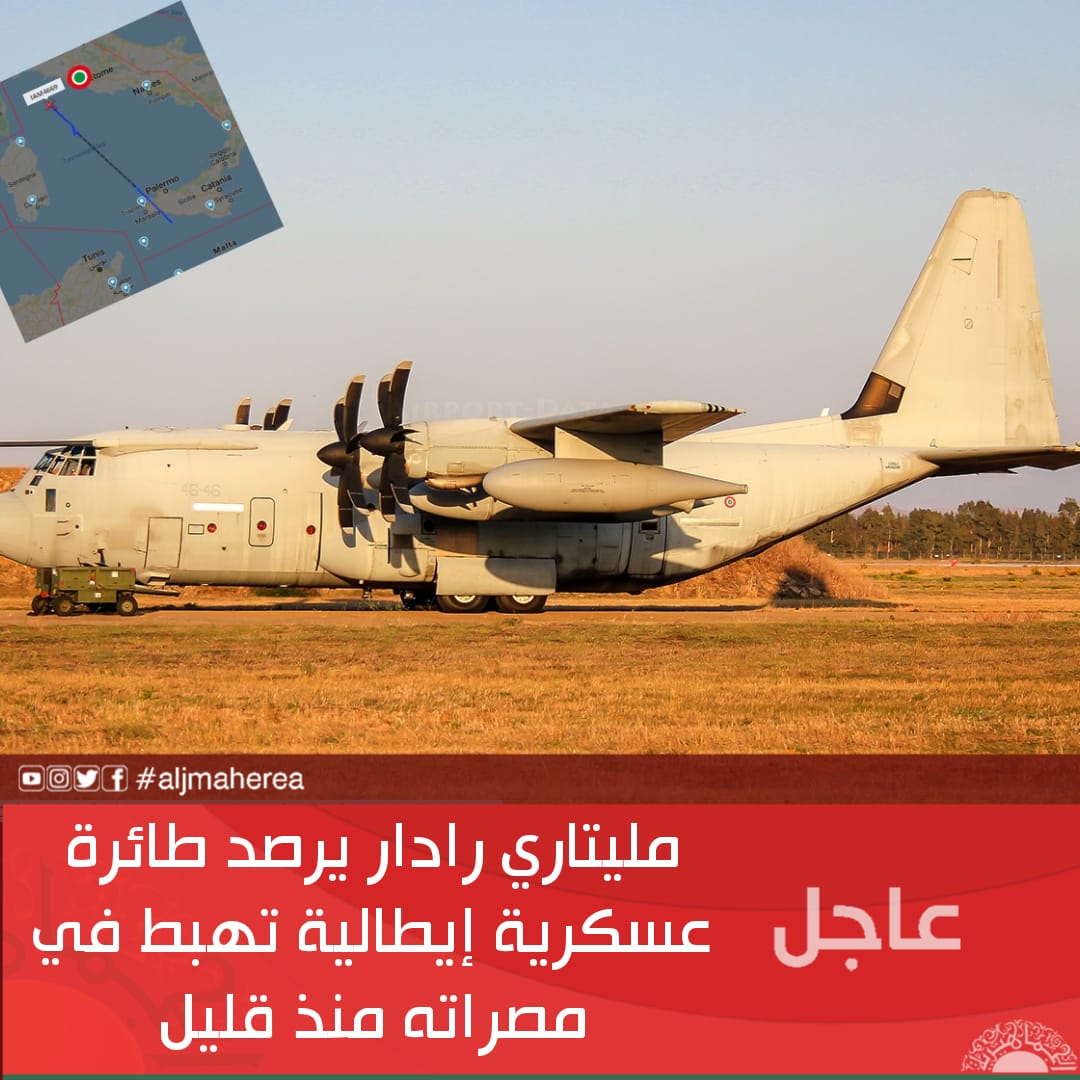 عاجل // مليتاري رادار يرصد طائرة عسكرية إيطالية تهبط في مصراته منذ قليل