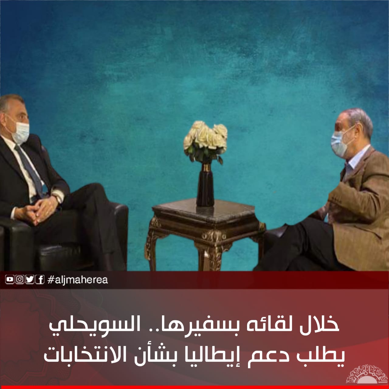 وقال السويحلي: “أكدت للسفير الإيطالي “جوزيبي بوتشينو” أنّ الإنتخابات مطلب مُلح لجميع الليبيين، وهي الوسيلة الأفضل لتوحيد مؤسسات الدولة وتجديد الشرعية واستعادة السيادة من خلال سلطة تشريعية واحدة”
