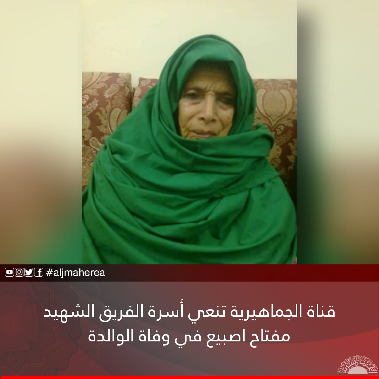 قناة الجماهيرية تنعي أسرة الفريق الشهيد مفتاح اصبيع في وفاة الوالدة