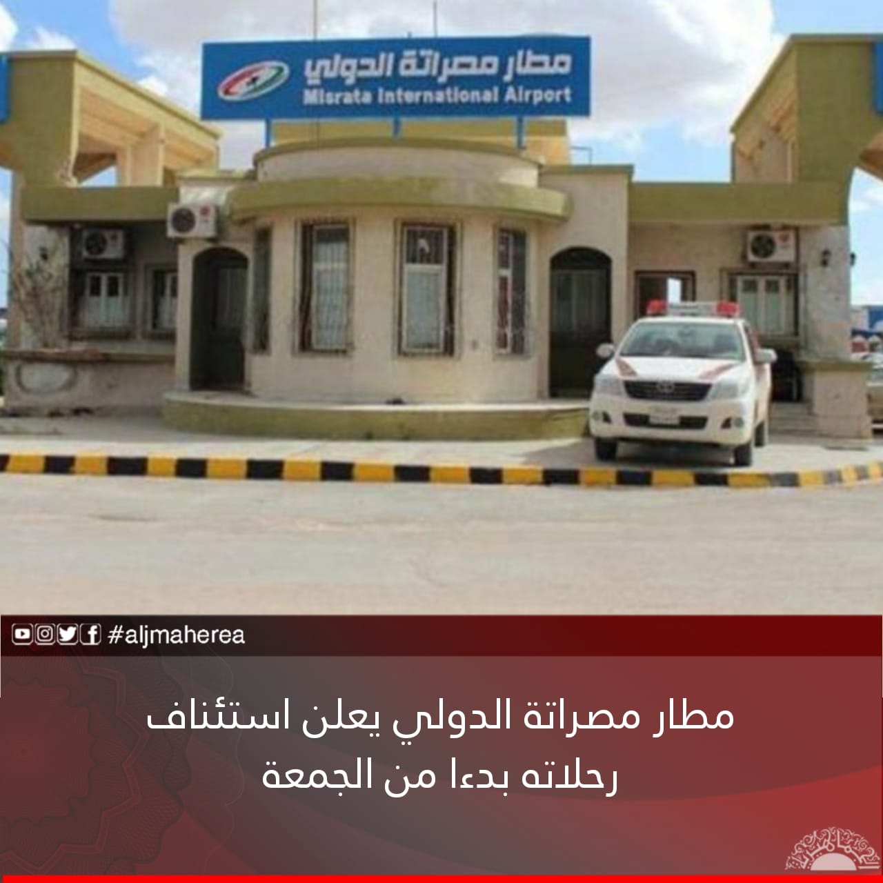 أعلن مطار مصراتة الدولي الأربعاء عن استئناف رحلاته بدءا من الجمعة، وذلك بعد الانتهاء من تحوير صالة القادمين.