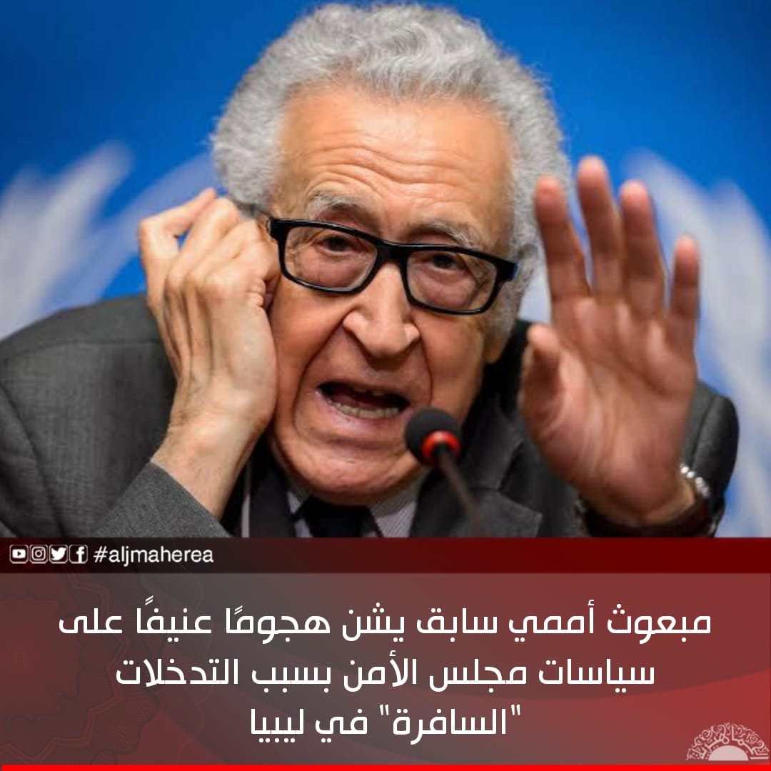 شنّ الدبلوماسي والمبعوث الأممي السابق، الأخضر الإبراهيمي، هجومًا على سياسات مجلس الأمن، قائلًا أن الوضع في ليبيا لا يختلف عن الوضع في سوريا، فيما يتعلق بالتدخلات الخارجية السافرة في الشأن الداخلي.