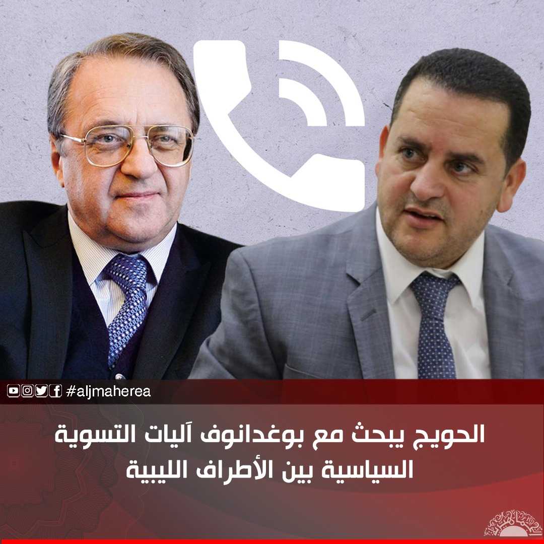 بحث وزير الخارجية بحكومة الشرق عبد الهادي الحويج مع نائب وزير خارجية روسيا ميخائيل بوغدنوف طرق إيجاد حل وتسوية سياسية بين الأطراف الليبية.