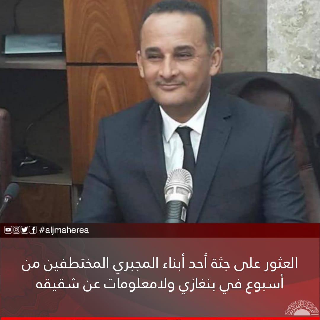 وقد اكدت المصادر مقتل عبدالحكيم مسعود محمد المجبري” 50 عامًا، الذي وجدت جثته بمستشفى الجلاء بنغازي مقتولا بالرصاص بعد أسبوع من اختطافه فيما لايزال مصير شقيقه منير المجبري مجهولا.