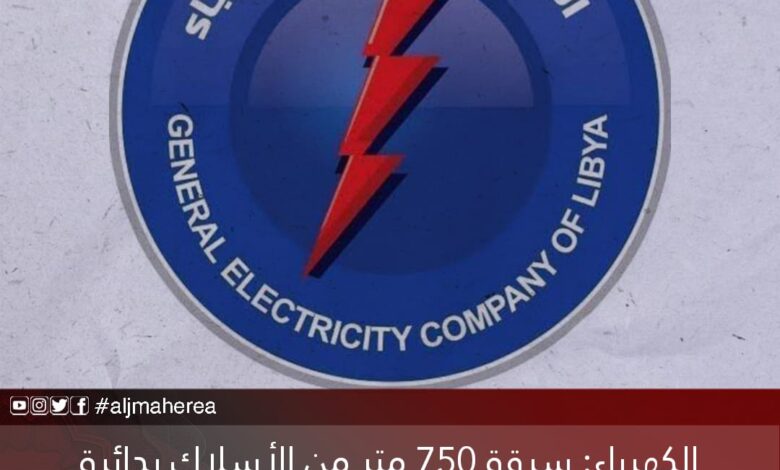وأكد بيان للشركة على موقعها على “فيس بوك”، سرقة مسافة ٧٥٠ متر من أسلاك الكهرباء بمنطقة المرازيق بدائرة توزيع قصر بن غشير، على خط النقل من ٣٠ السجاد.