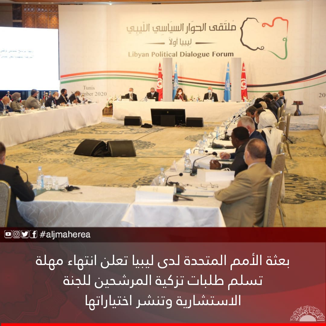 أعلنت بعثة الأمم المتحدة لدى ليبيا عن انتهاء مهلة تسلم طلبات تزكية المرشحين للجنة الاستشارية مساء الجمعة باستلام 28 طلبا خلال الفترة المحددة لقبول الطلبات.