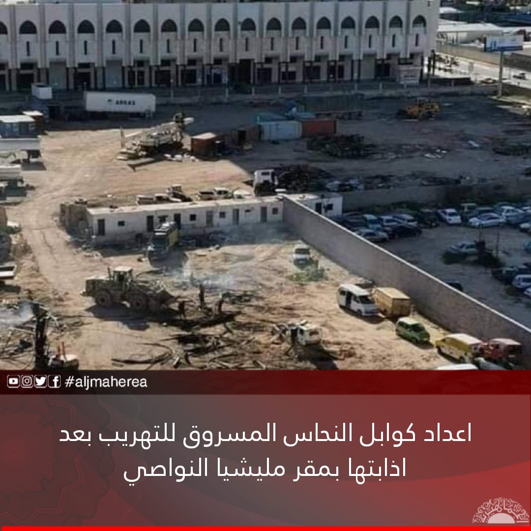 واوضح المصدر، ان النحاس المذاب في المقر هو الكوابل النحاسية الخاصة بنقل التيار الكهربائي التي تتم سرقتها من قبل افراد المليشيا اضافة الى سرقة آليات شركة الاشغال العامة التي تم السطو عليها بقوة السلاح .