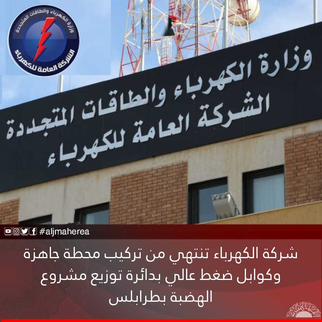 أعلنت الشركة العامة للكهرباء انتهائها من تركيب محطة جاهزة وكوابل ضغط عالي بدائرة توزيع مشروع الهضبة بالعاصمة طرابلس.
