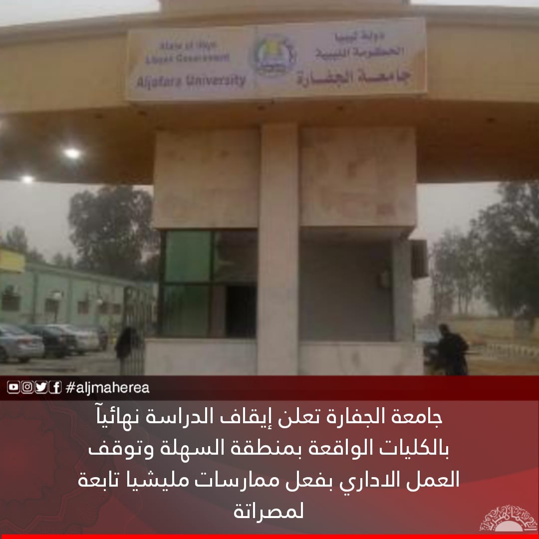 وبسبب تلك الممارسات لم يجد مجلس إدارة جامعة الجفارة طريقا آخر سوى إيقاف الدراسة نهائيآ بالكليات الواقعة بمنطقة السهلة، وتوقف عمل الإدارة وكافة الإجراءات في ذات النطاق بالإدارة العامة.