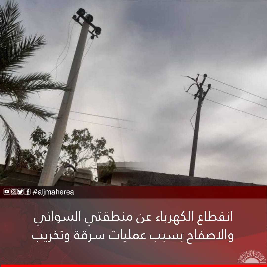 انقطاع الكهرباء عن منطقتي السواني والاصفاح بسبب عمليات سرقة وتخريب