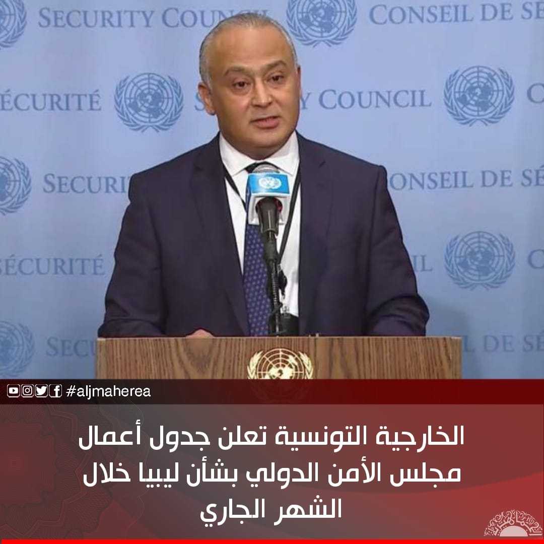 كشفت الخارجية التونسية عن برنامج عمل مجلس الأمن الدولي الشهر الجاري والذي سيتضمن تقرير وإحاطة ومشاورات حول ليبيا.