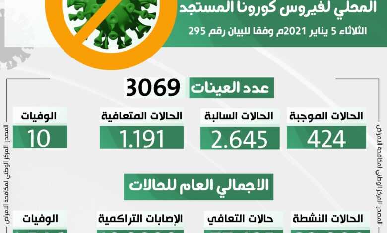 – عدد (424) عينة موجبة ( 278 جديدة + 146 مخالطة )