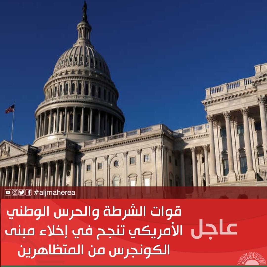 عاجل// قوات الشرطة والحرس الوطني الأمريكي تنجح في إخلاء مبنى الكونجرس من المتظاهرين