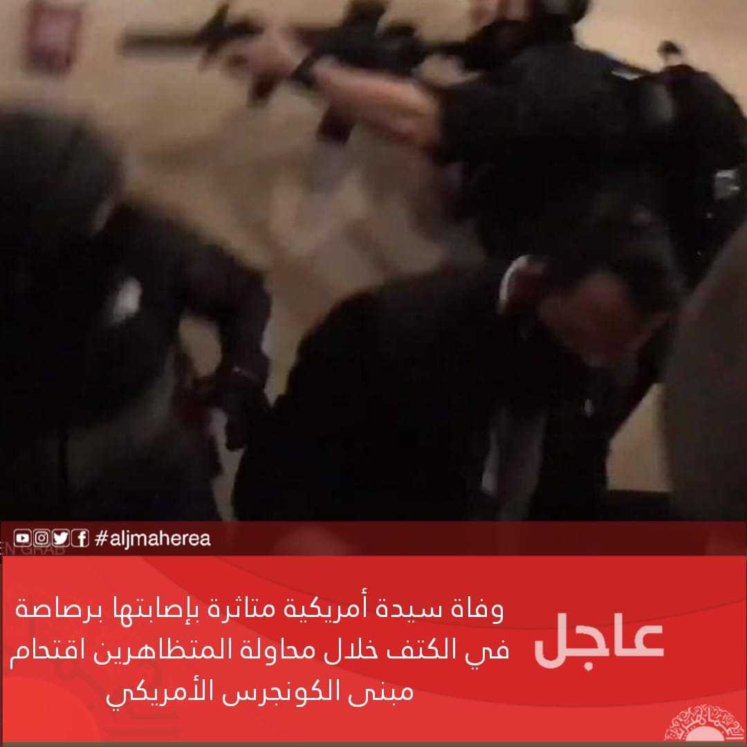 عاجل// وفاة سيدة أمريكية متاثرة بإصابتها برصاصة في الكتف خلال محاولة المتظاهرين اقتحام مبنى الكونجرس الأمريكي