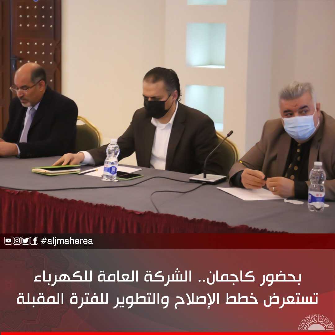 بحضور النائب بالمجلس الرئاسي عبدالسلام كاجمان، استعرض مجلس إدارة الشركة العامة للكهرباء، خطة الإصلاح، التي تشمل برامج الصيانة والتطوير لوحدات الإنتاج، وتفعيل المشروعات المتعاقد على تنفيذها في السابق، وصيانة منظومات النقل والتوزيع والتحكم في الطاقة الكهربائية من أجل خفض ساعات الانقطاع، والتأكيد على إعادة هيكلة القطاع وتنظيمه.