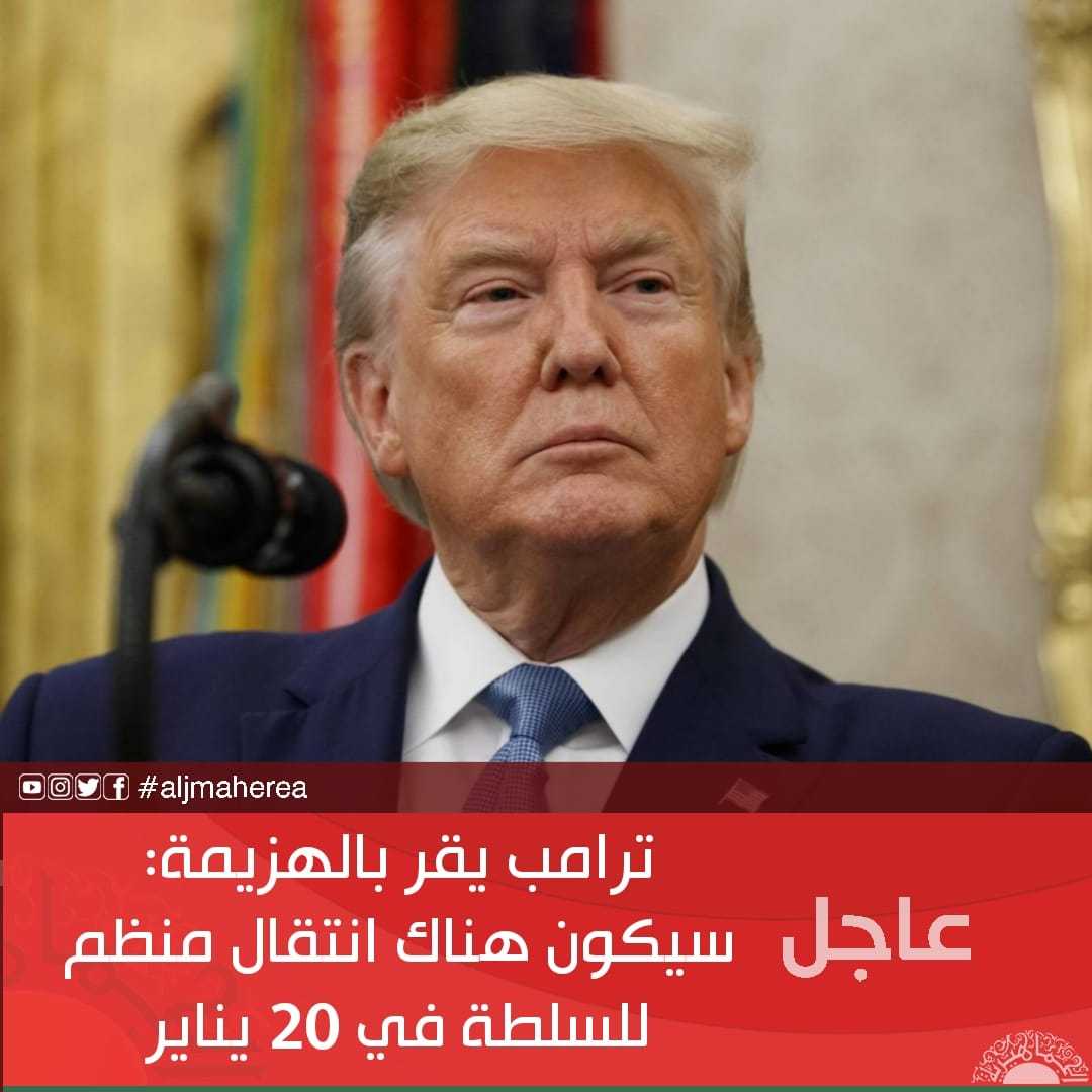 عاجل// ترامب يقر بالهزيمة: سيكون هناك انتقال منظم للسلطة في 20 يناير