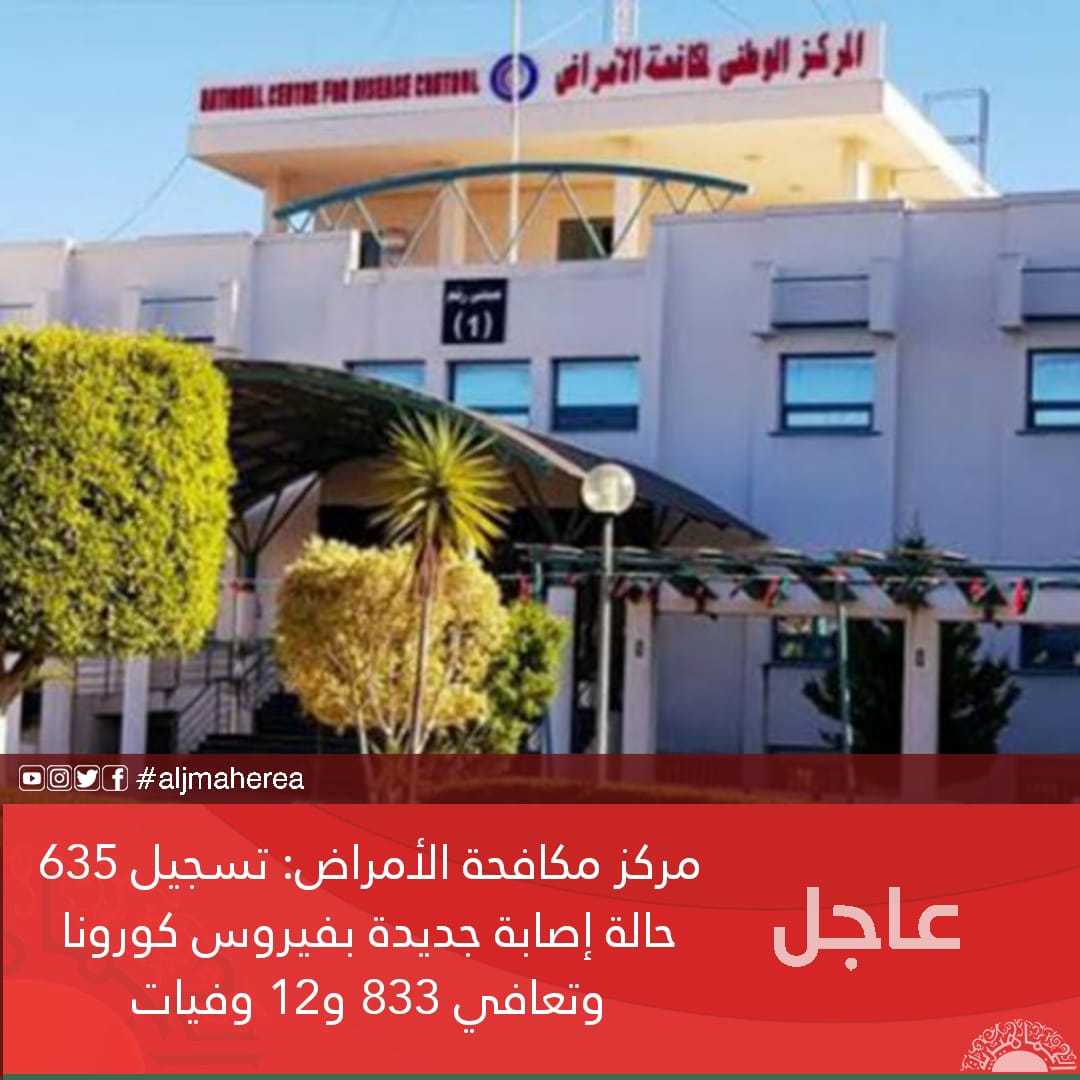 عاجل// مركز مكافحة الأمراض: تسجيل 635 حالة إصابة جديدة بفيروس كورونا وتعافي 833 و12 وفيات 5 سنوات ago مقالات ذات صلة محامي سيف الإسلام يفند مزاعم خالد المشري حول أحقية ترشحه للرئاسة الأرصاد الجوية: طقس مستقر على معظم مناطق البلاد اليوم الجهاني: الأزمة الليبية تدخل عامها 15 وسط مخاطر التقسيم والحرب