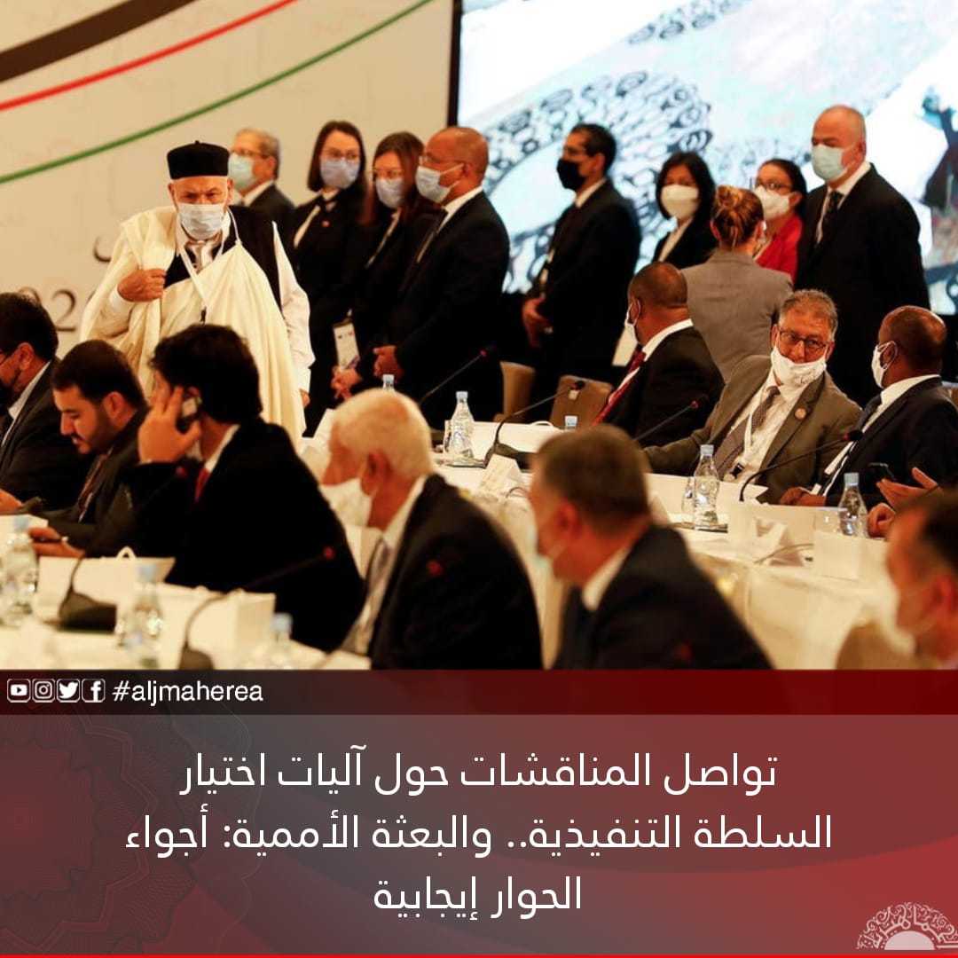 من جانبها قالت البعثة الأممية إلى ليبيا، إن أجواء مباحثات أعضاء اللجنة الثمانية عشر، حول آلية الاختيار وإجراءات الترشيح للسلطة التنفيذية كانت إيجابية، مجددة تأكيدها على الحاجة الملحة للخروج من الانسداد الحالي والإسراع في عملية توحيد السلطة التنفيذية.
