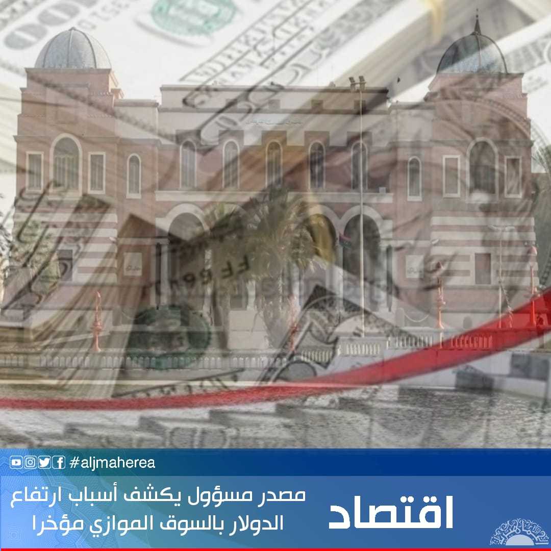 أرجع مسؤول بمصرف ليبيا المركزي، سبب ارتفاع الدولار بالسوق الموازي، إلى اقفال المصارف التجارية لأبوابها المدة الماضية نتيجة الجرد السنوي