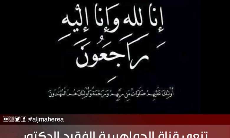وتتقدم اسرة القناة الى اهله وذويه بأحر التعازي واصدق المواساة القلبية داعية المولى عز وجل ان يتقبله بواسع رحمته وان يلهم اهله وذويه جميل الصبر والسلوان وان يعوض الوطن فيه خيرا .