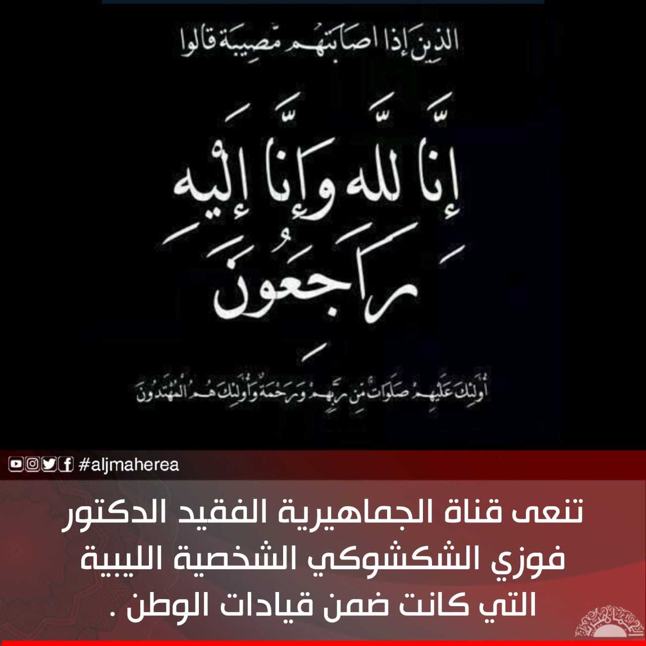 تنعى قناة الجماهيرية الفقيد الدكتور فوزي الشكشوكي الشخصية الليبية التي كانت ضمن قيادات الوطن .