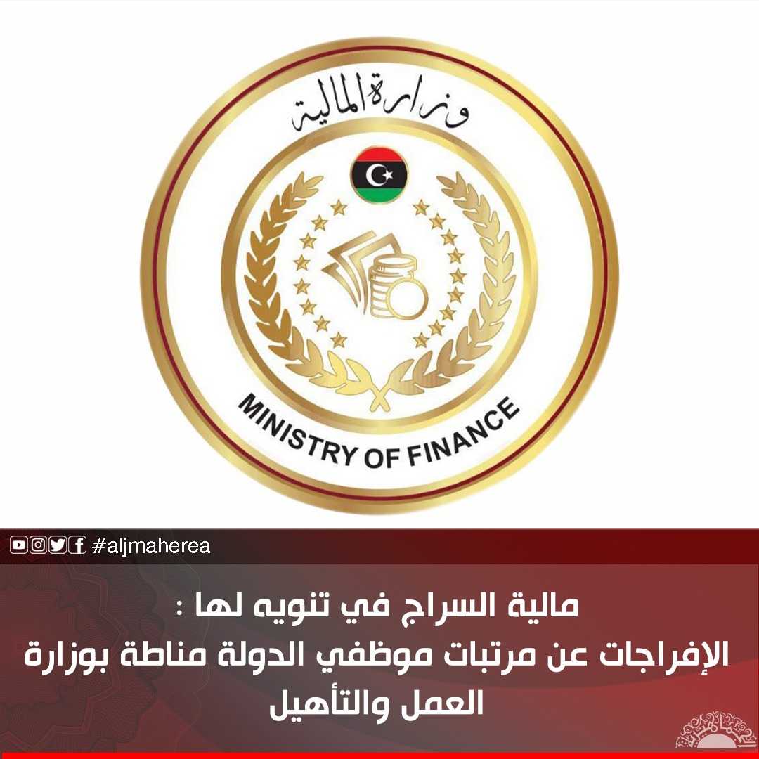 مالية السراج في تنويه لها : الإفراجات عن مرتبات موظفي الدولة مناطة بوزارة العمل والتأهيل