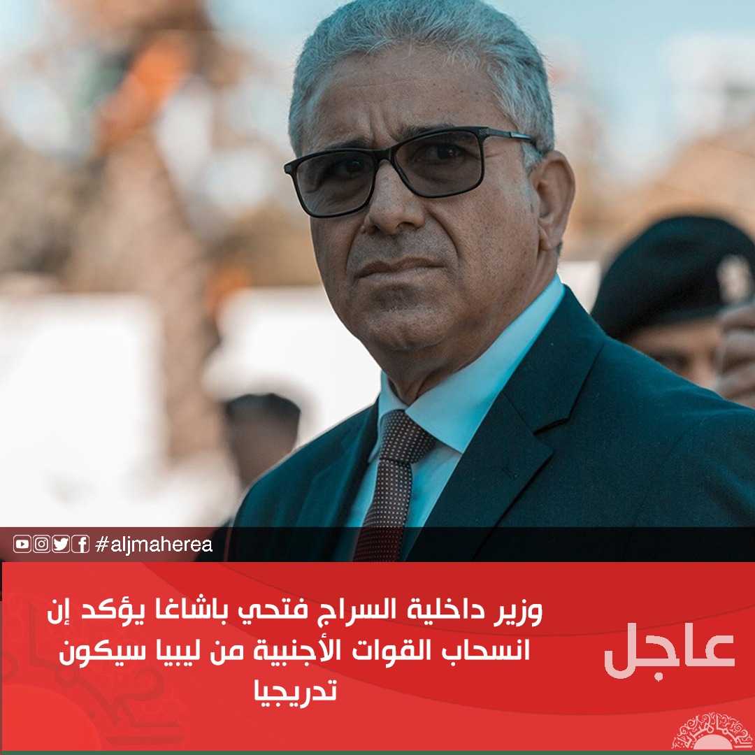 عاجل // وزير داخلية السراج فتحي باشاغا يؤكد إن انسحاب القوات الأجنبية من ليبيا سيكون تدريجيا
