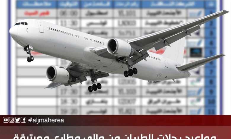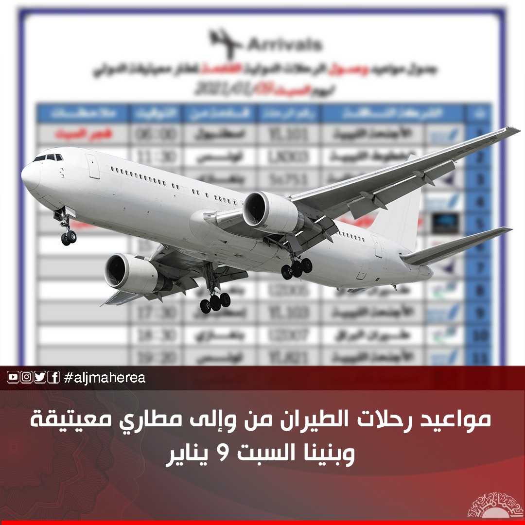 مواعيد رحلات الطيران من وإلى مطاري معيتيقة وبنينا السبت 9 يناير