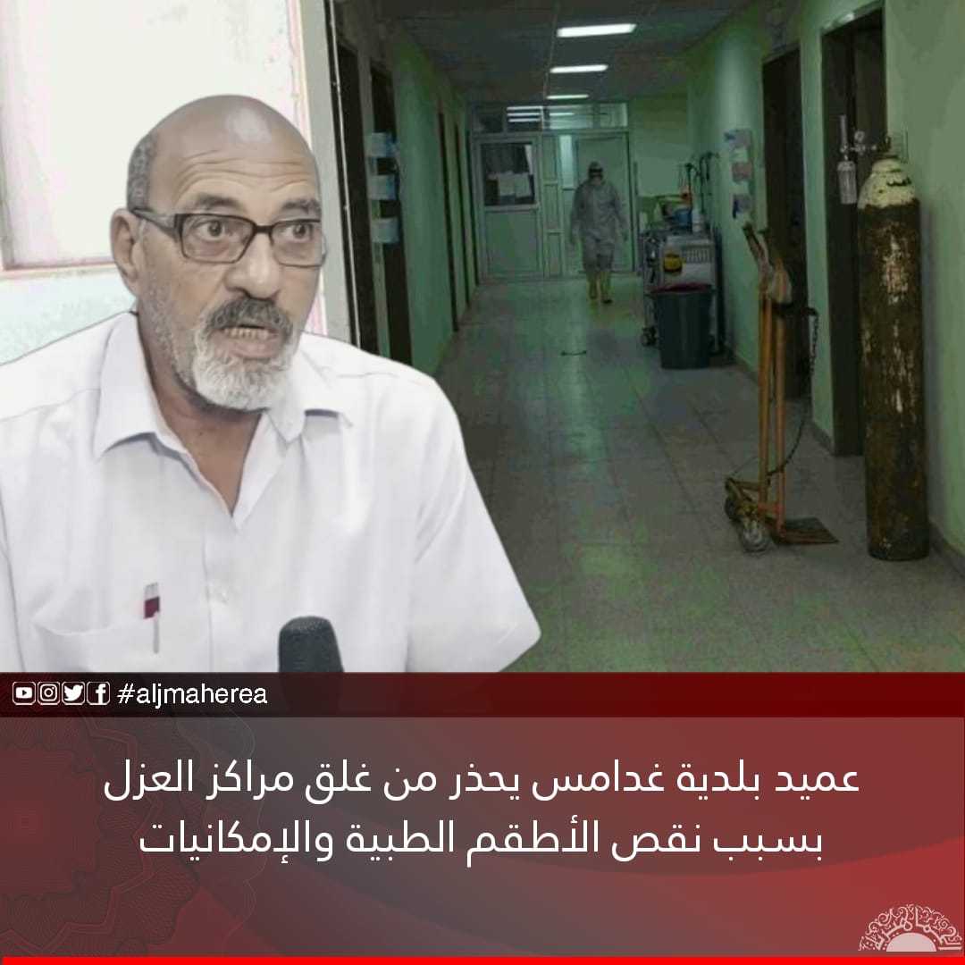 حذر عميد بلدية غدامس قاسم المانع، أن هناك إمكانية لغلق مراكز العزل لأبوابها بسبب النقص الكبير في الأطقم الطبية.