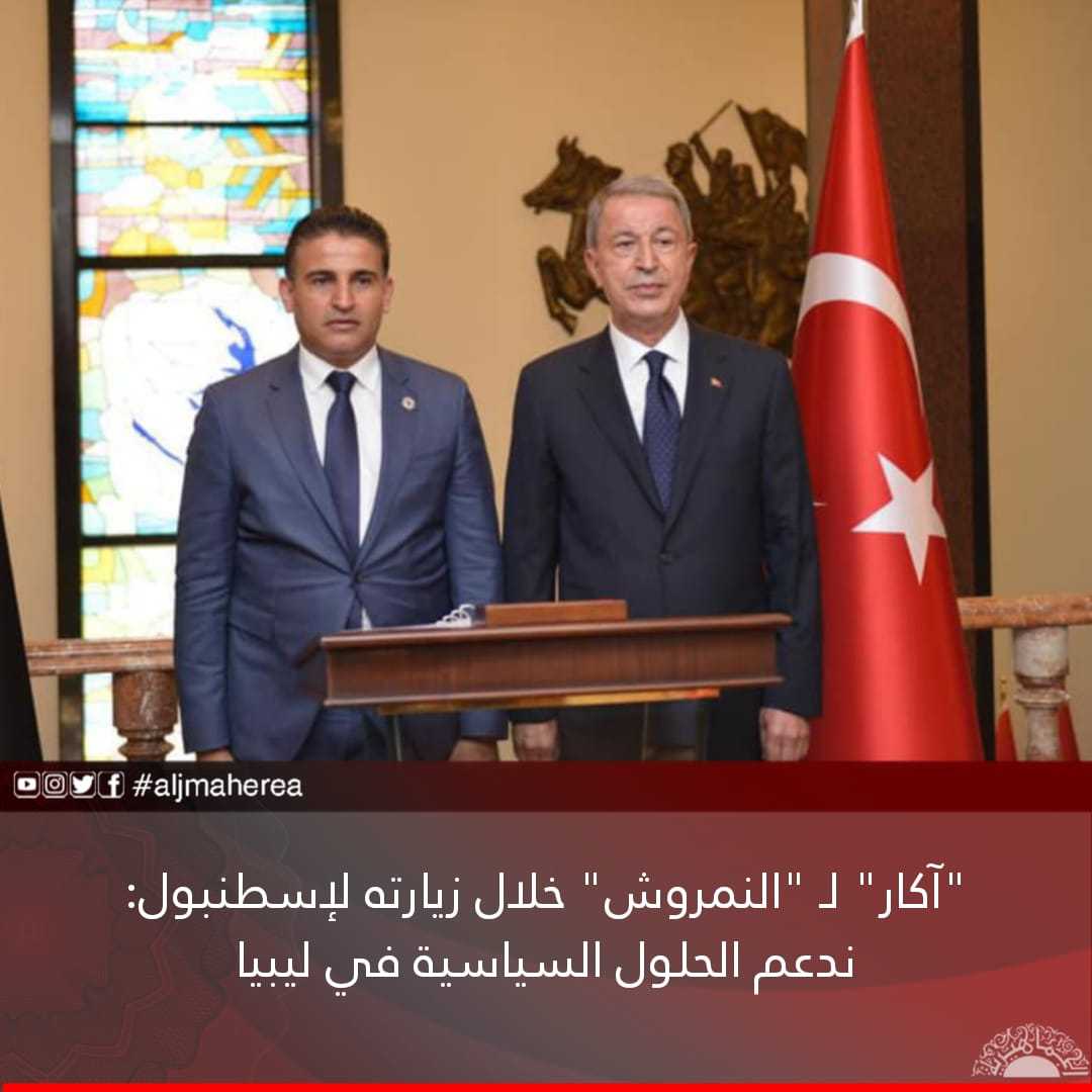 “آكار” لـ “النمروش” خلال زيارته لإسطنبول: ندعم الحلول السياسية في ليبيا