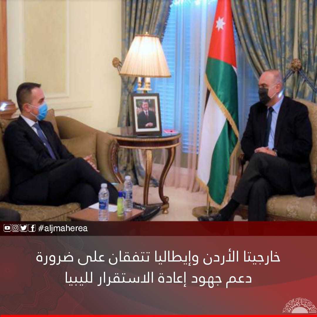 اتفق وزيرا الخارجية الأردني أيمن الصفدي، والإيطالي لويجي دي مايو، على ضرورة دعم كل الجهود التي تستهدف حل الأزمة الليبية وإعادة الأمن والاستقرار للبلاد.