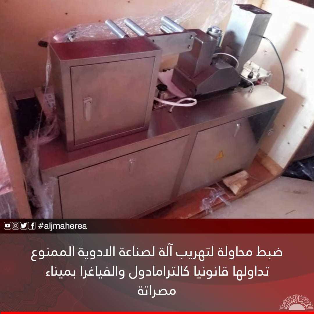 ضبط محاولة لتهريب آلة لصناعة الادوية الممنوع تداولها قانونيا كالترامداول والفياغرا بميناء مصراتة