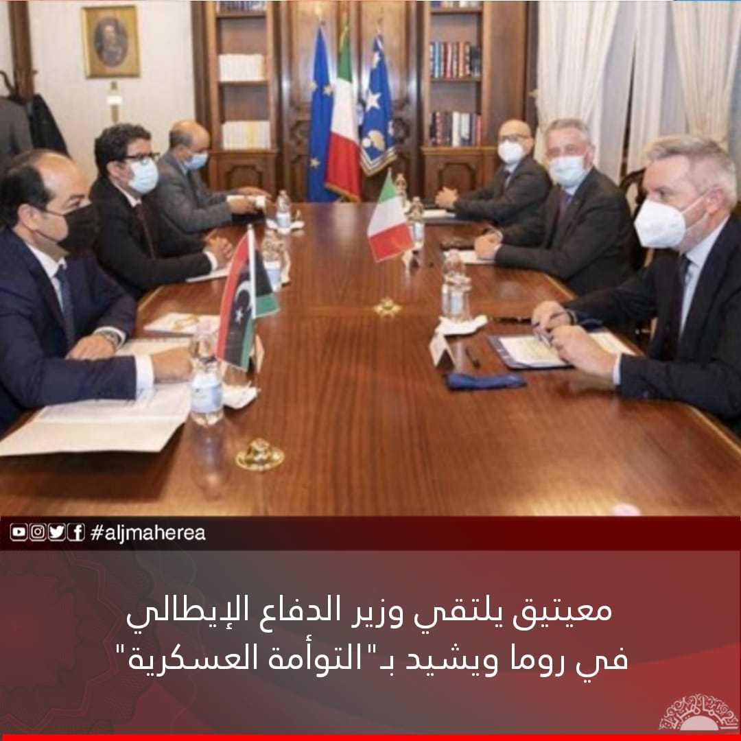 فيما أشاد معيتيق، بالعلاقات الليبية الإيطالية وبالدعم المقدم من الجانب الإيطالي في المجال العسكري. وتابع معيتيق، قمنا بتشكيل لجنة فنية مشتركة، من أجل خلق توأمة مع الجانب الإيطالي فيما يخص الطب العسكري والاستفادة من خبرته في هذا المجال.