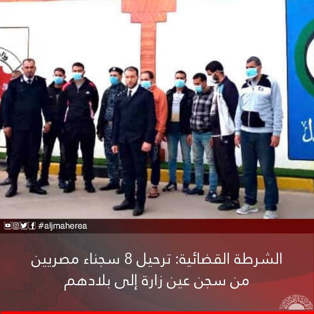 أعلن جهاز الشرطة القضائية، ترحيل ثمانية سجناء مصريين محكومين بالإبعاد خارج ليبيا، إلى بلادهم عبر مطار معيتيقة الدولي.