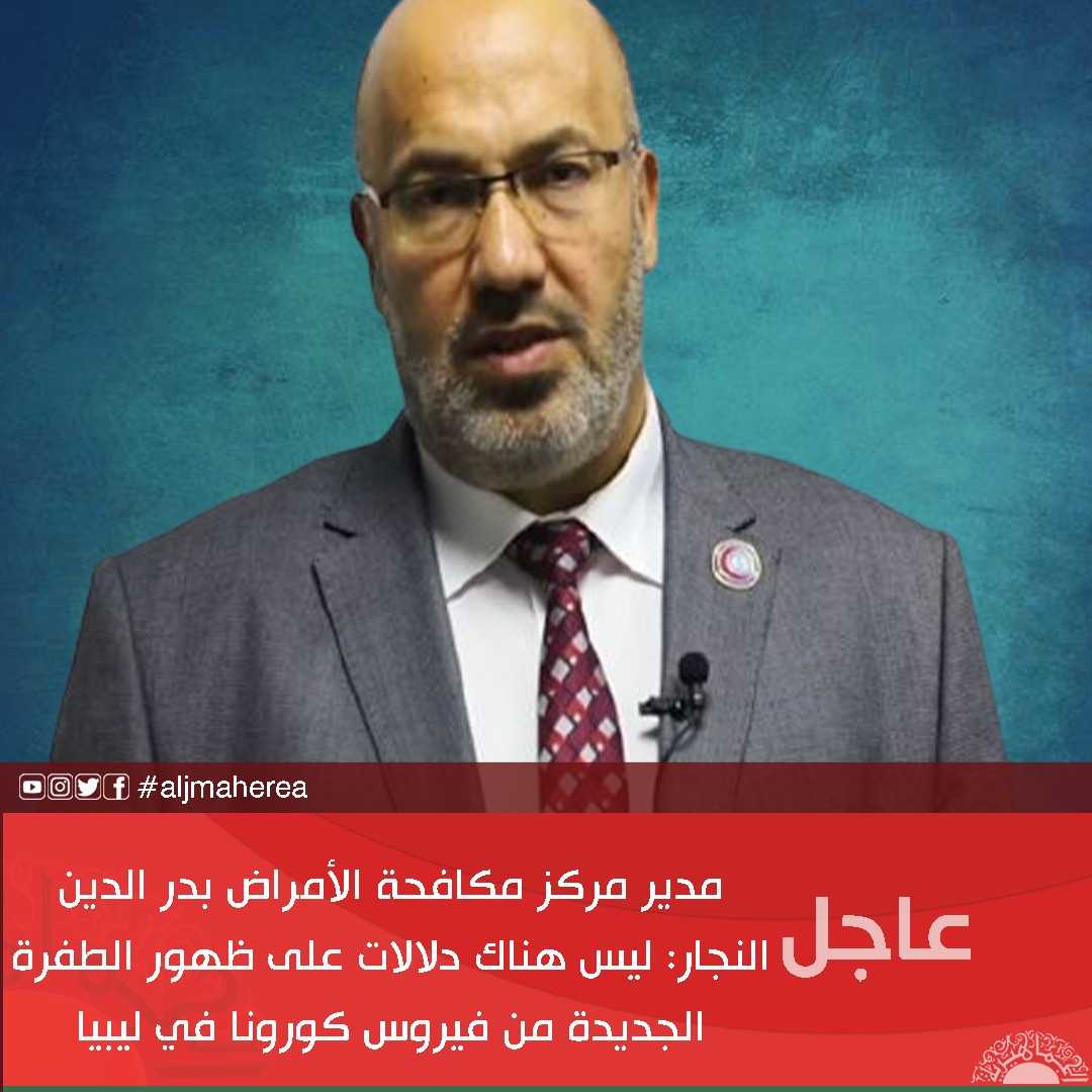 عاجل// مدير مركز مكافحة الأمراض بدر الدين النجار: ليس هناك دلالات على ظهور الطفرة الجديدة من فيروس كورونا في ليبيا 5 سنوات ago مقالات ذات صلة سفينة روسية تحمل عتادا عسكريا ترسو في طبرق وسط مؤشرات على إعادة تموضع موسكو في ليبيا عاجل | مراقبة تعليم نالوت تعلن تعليق الدراسة يوم غد الأربعاء نتيجة التقلبات الجوية لافروف: بريطانيا لا تستحق لقب العظمى.. والجماهيرية الليبية العظمى كانت الاستثناء
