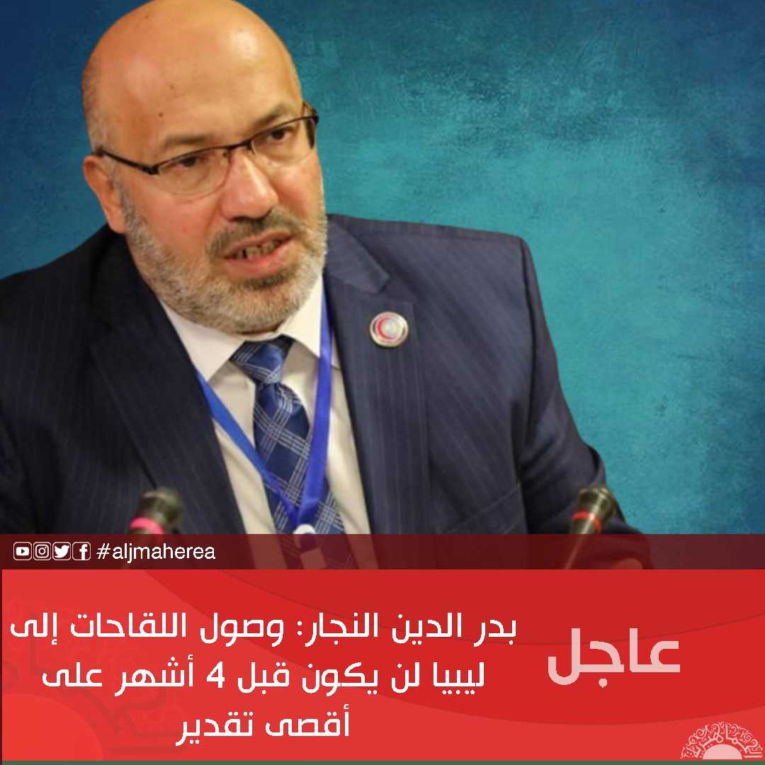 عاجل// بدر الدين النجار: وصول اللقاحات إلى ليبيا لن يكون قبل 4 أشهر على أقصى تقدير 5 سنوات ago مقالات ذات صلة الأعلى للقضاء يكلف المستشار عبد القادر صهيب رئيسًا لمحكمة استئناف سبها خبير دولي: الناتو حول ليبيا من أعلى مستوى معيشة في أفريقيا إلى دولة فاشلة غارقة في الفوضى الأرصاد: استقرار نسبي على معظم المناطق وأمطار متفرقة على الشمال