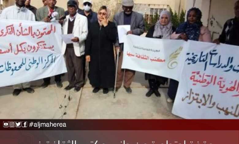 تضامنًا مع المركز الوطني للمحفوظات والدراسات التاريخية، نظم مكتب الثقافة سبها، وبعض المهتمين بالشأن الفكري والثقافي، اليوم الثلاثاء، وقفة احتجاجية.