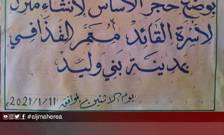 وضع المواطنون في مدينة بني وليد، حجر الأساس لبناء منزل لأسرة القائد الشهيد معمر القذافي.
