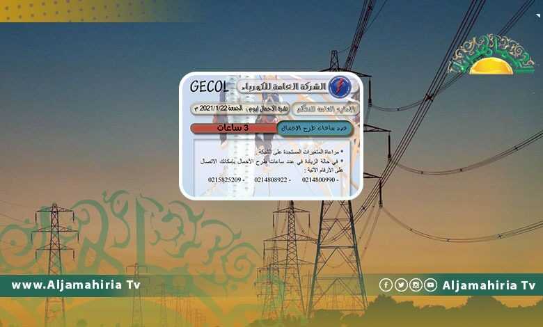 أعلنت الشركة العامة للكهرباء أن عدد ساعات طرح الأحمال اليوم الجمعة ستصل إلى 3 ساعات.