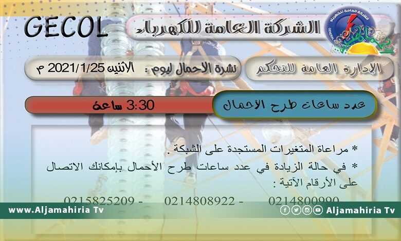 ودعت الشركة العامة للكهرباء عبر صفحتها بموقع “فيسبوك” إلى مراعاة المتغيرات المستجدة على الشبكة مؤكدة أنه في حال زيادة طرح الأحمال يمكن للمواطنين الاتصال بالشركة.