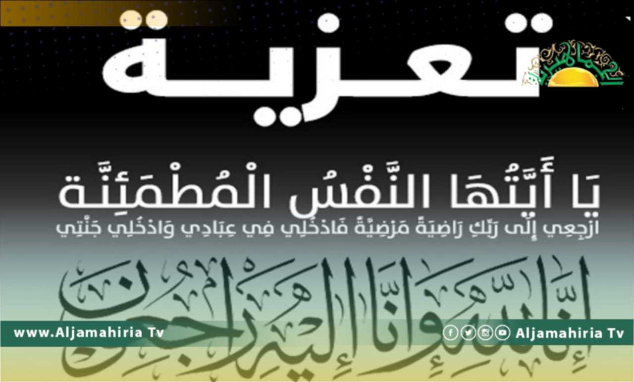 تتقدم قناة الجماهيرية بأحر التعازي والمواساة القلبية للمناضل الحر رمضان بوقرين القيادي في الجبهة الشعبية لتحرير ليبيا في وفاة شقيقته تقبلها الله بواسع رحمته.