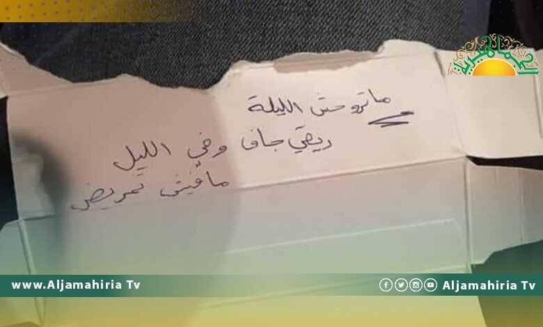 “ما تروحش الليلة ريقي جاف وفِي الليل ما فيش تمريض” .. جملة كتبها احدى النزلاء بمركز العزل بمدينة زليتن كرسالة لقريبه يدعوه فيها للبقاء الى جواره بعد ان ساءت صحته ولم يعد يجد الرعاية الصحية والاهتمام المطلوب ليكون قادرا على الصمود امام تغلغل فيروس كورونا في جسده ويعيش وضها حرجا.