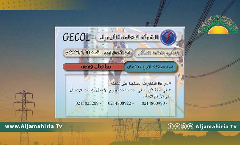 أعلنت الشركة العامة للكهرباء، اليوم السبت، أن عدد ساعات طرح الأحمال في المنطقتين الوسطى والغربية سيكون ساعتان ونصف. وأكدت الشركة ضرورة مراعاة المتغيرات على الشبكة، منبهة إلى أنه في حالة الزيادة في عدد ساعات طرح الأحمال يمكن للمواطنين التواصل على أرقام الشركة لحل المشكلة.