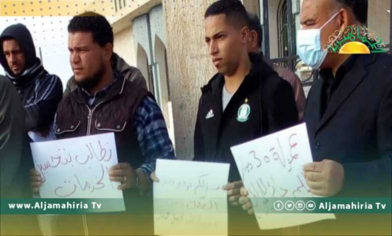 وعبر المحتجون، في لافتات رفعوها، وفق ما نشرته “بوابة أفريقيا”، أمام مدخل المصرف عن استيائهم وقالوا: إن فرض إتاوة مالية على المعاملات الإدارية الخاصة بالتحويلات بين المواطن والمحلات التجارية، تبلغ قيمتها 30 دينارًا عن كل معاملة يعد تعديا على حقوق المواطن.