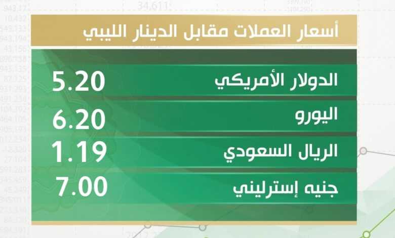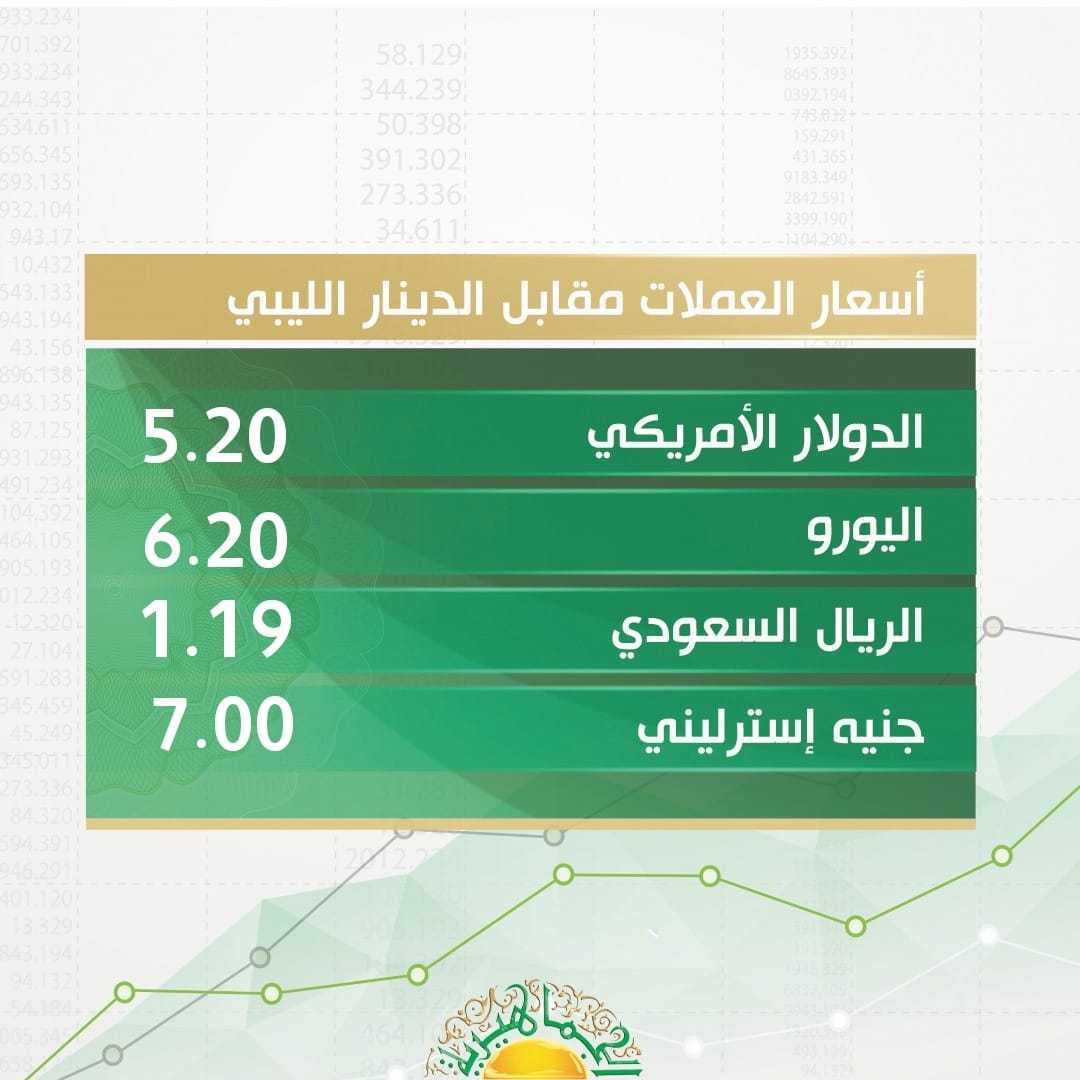 الدولار الأمريكي – طرابلس 5.20 ~ 5.19 دينار