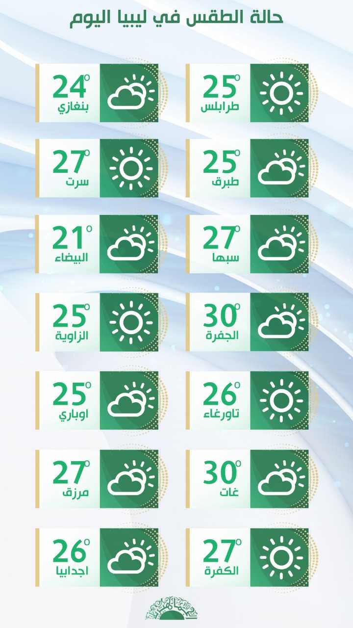 طرابلس 25 – 15 مشمس في أغلب الأوقات